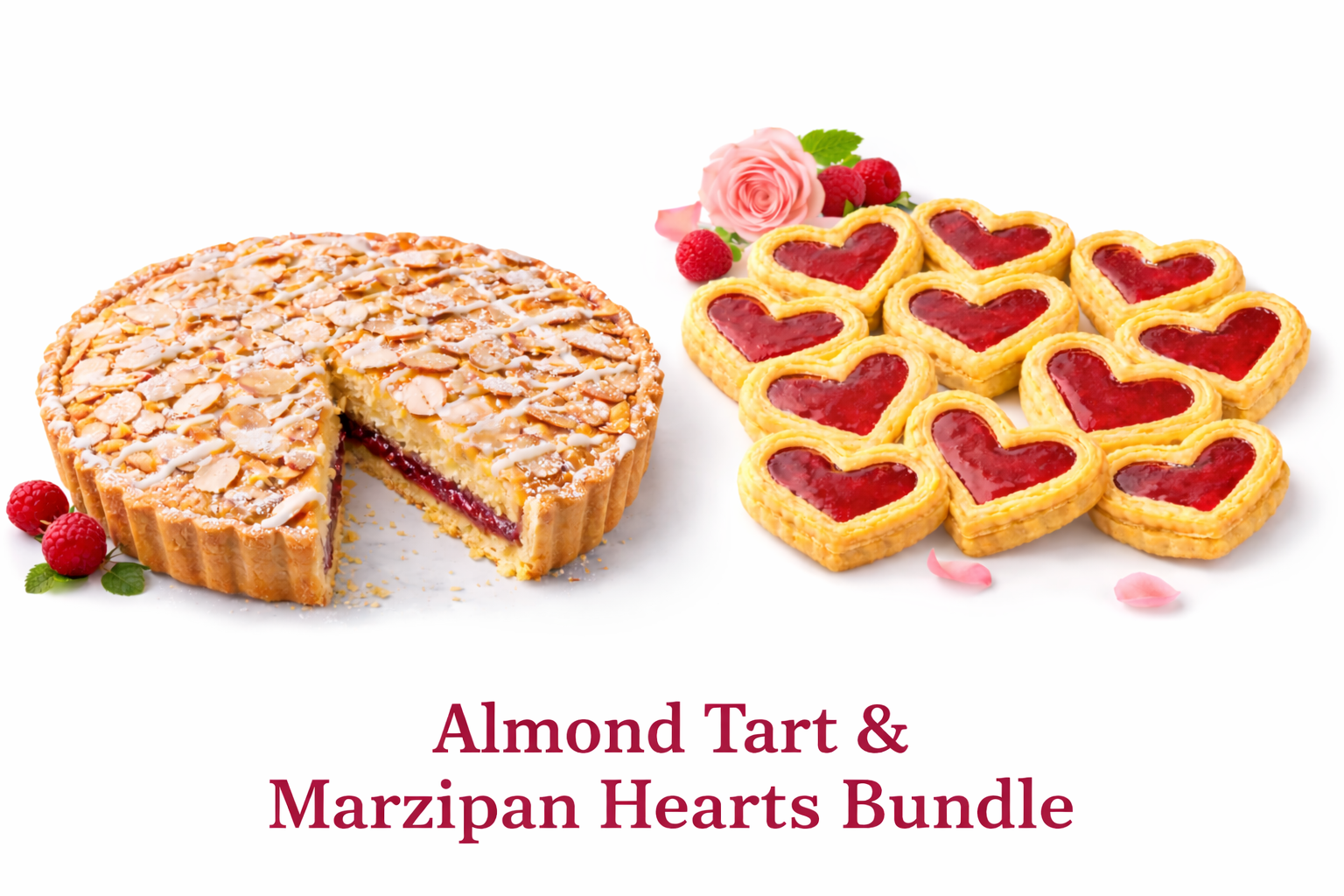 A handcrafted raspberry almond tart paired with delicate marzipan heart cookies—made for a beautiful and memorable coffee moment with Mom.